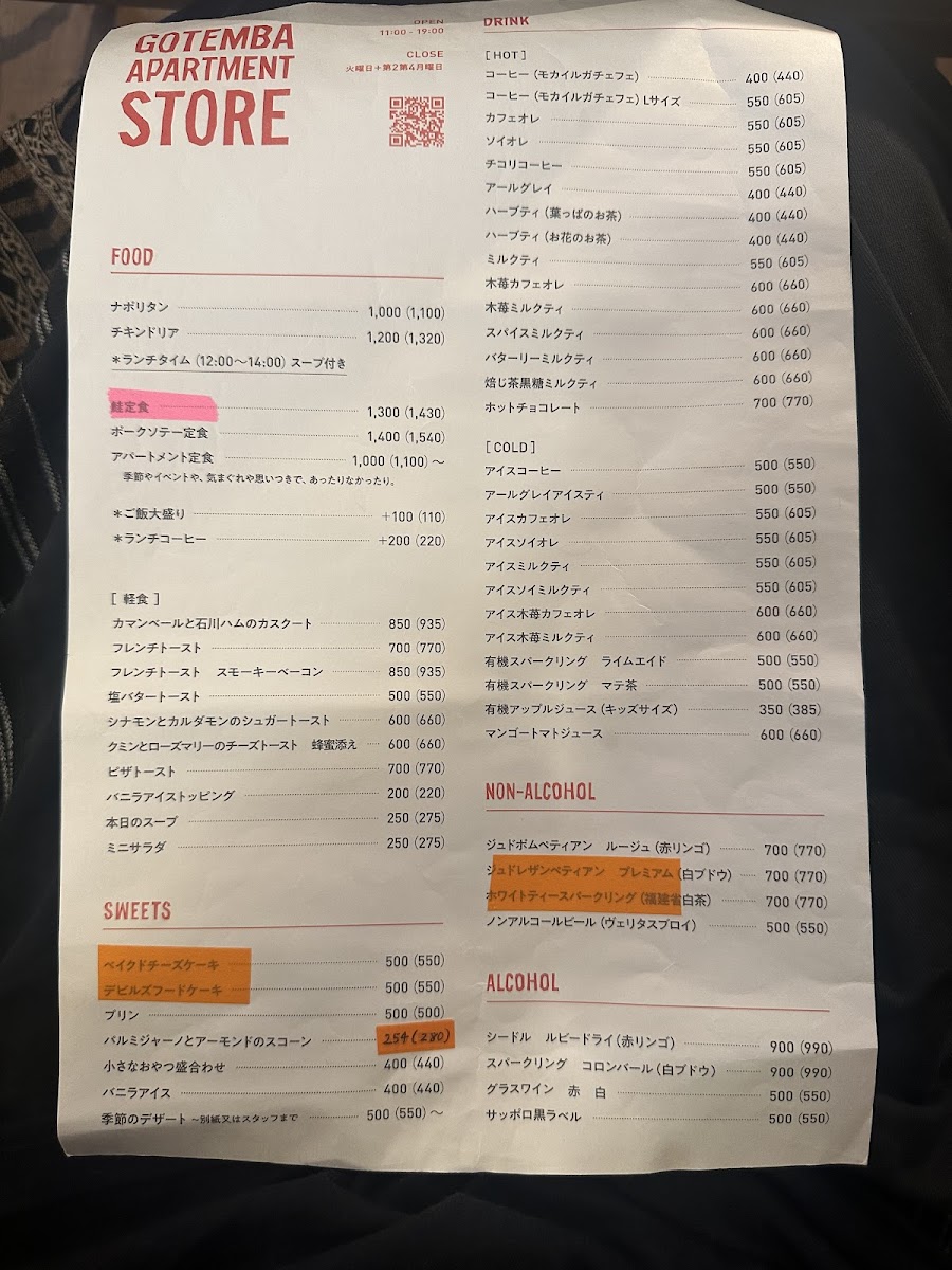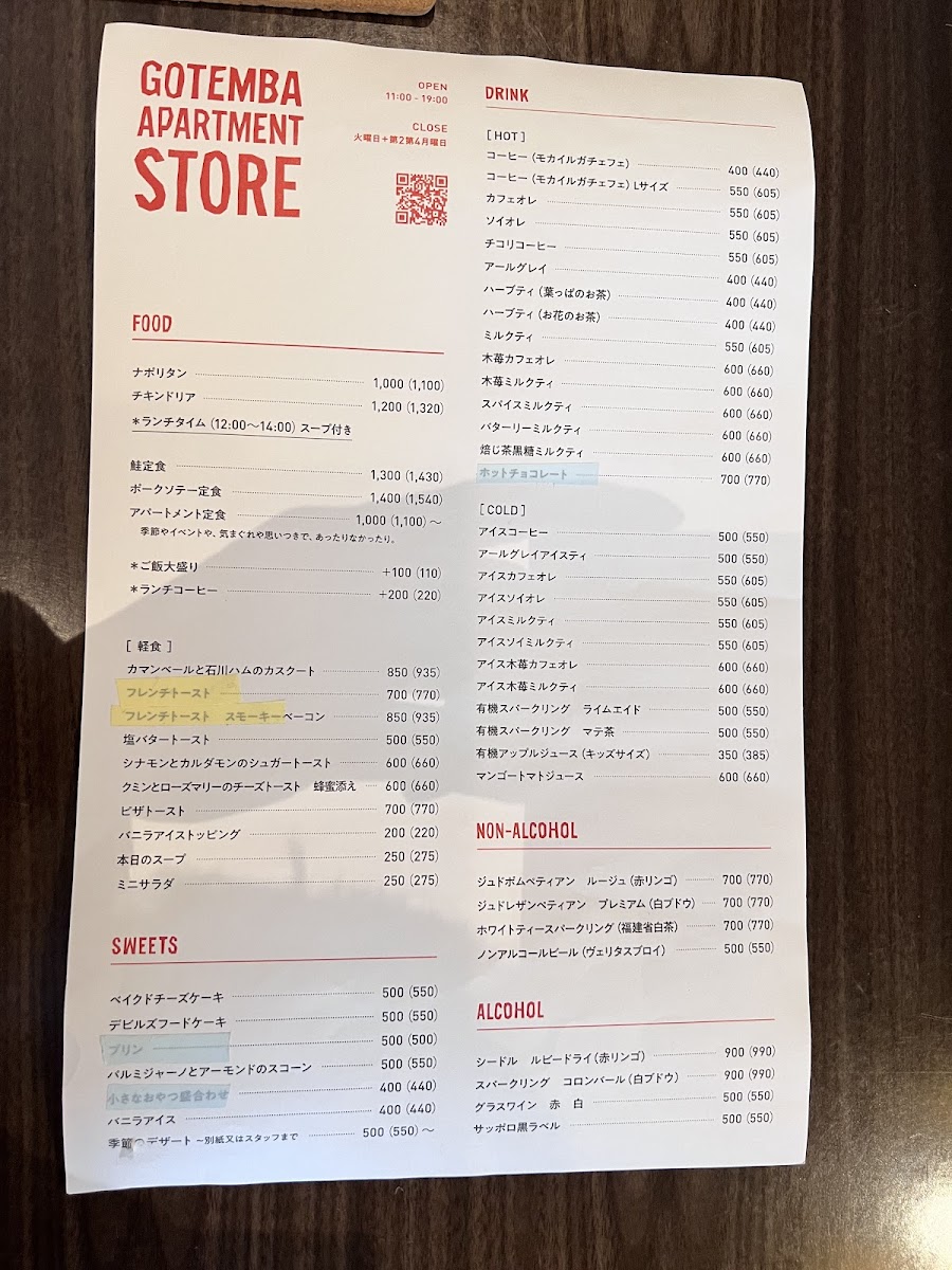 Gotemba Apartment store Menu